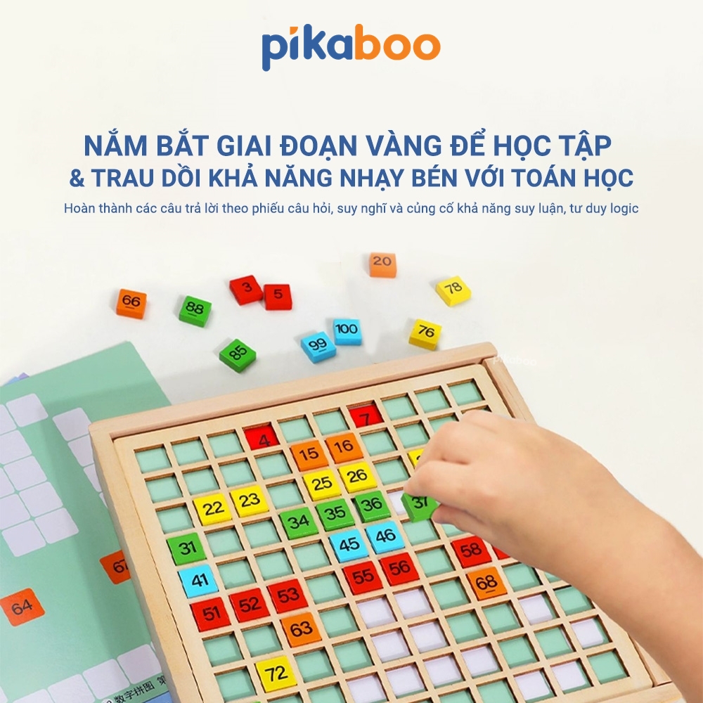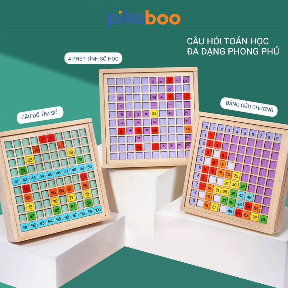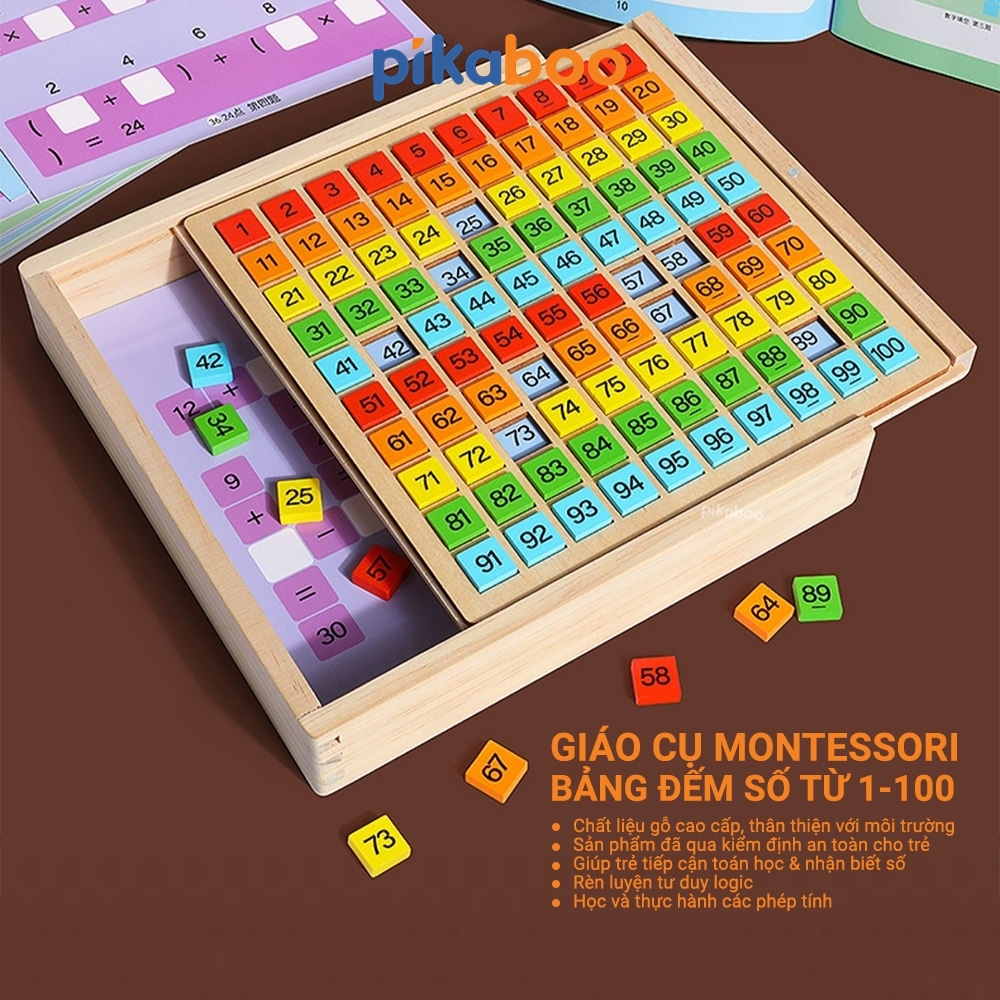 Bảng gỗ số tập đếm từ 1 đến 100 Pikaboo, giáo cụ Montessori giúp bé nhận biết sớm về toán học và rèn luyện tư duy Logic