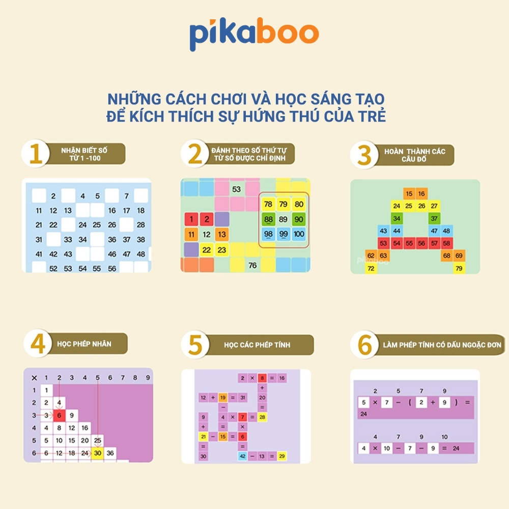 Bảng gỗ số tập đếm từ 1 đến 100 Pikaboo