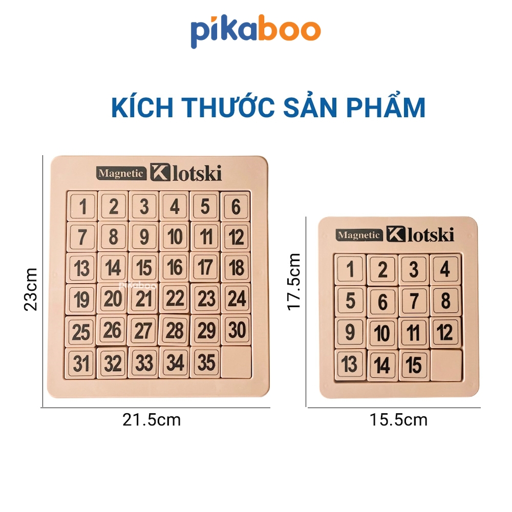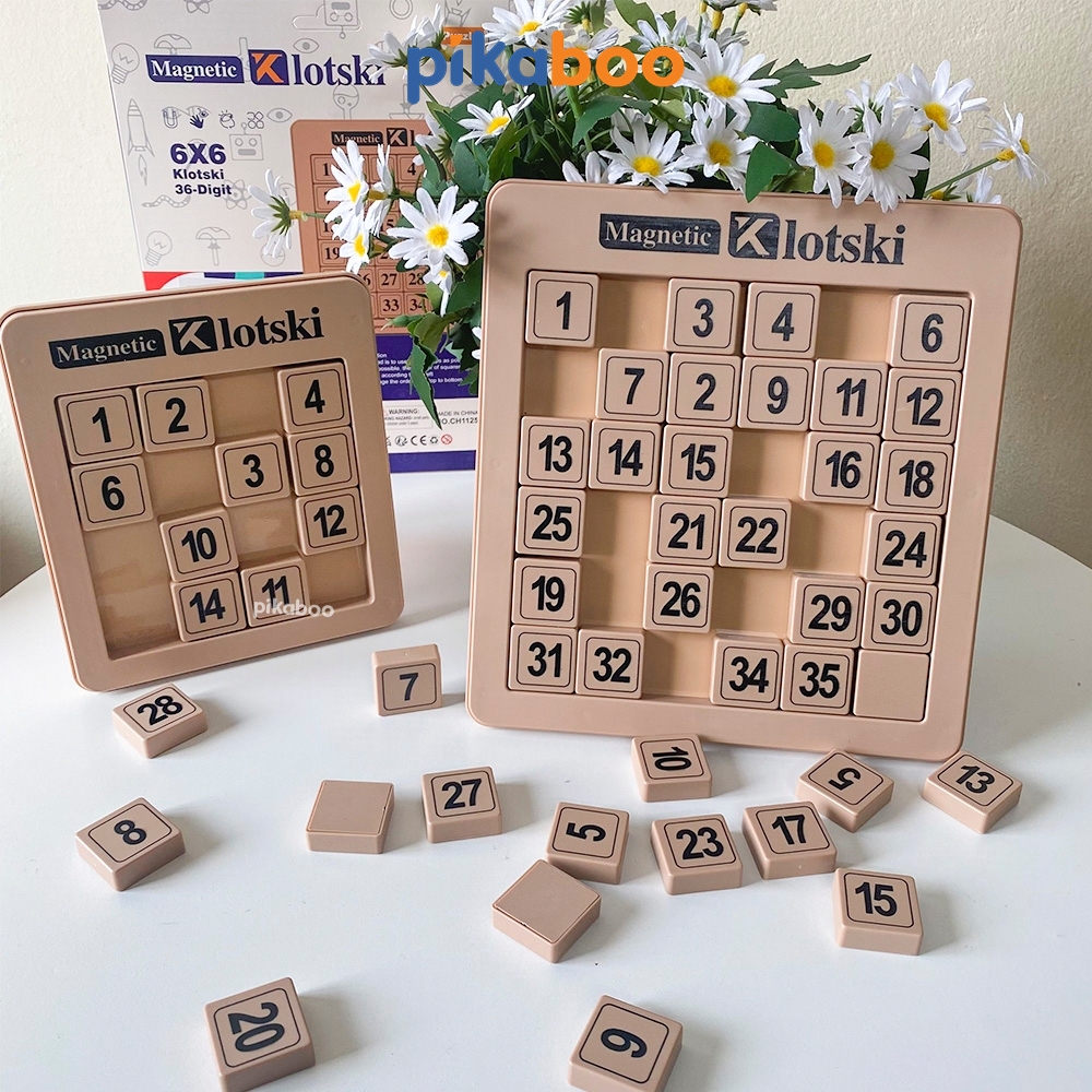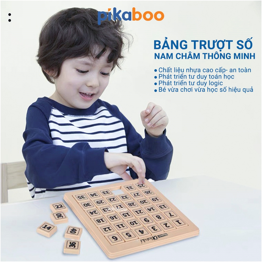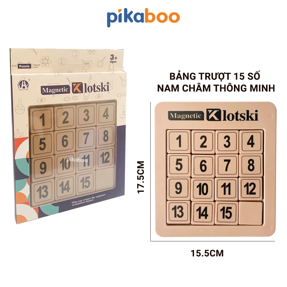 Bảng trượt số thông minh gắn nam châm Klotski cao cấp Pikaboo vừa chơi vừa học phát triển tư duy chất liệu nhựa an toàn
