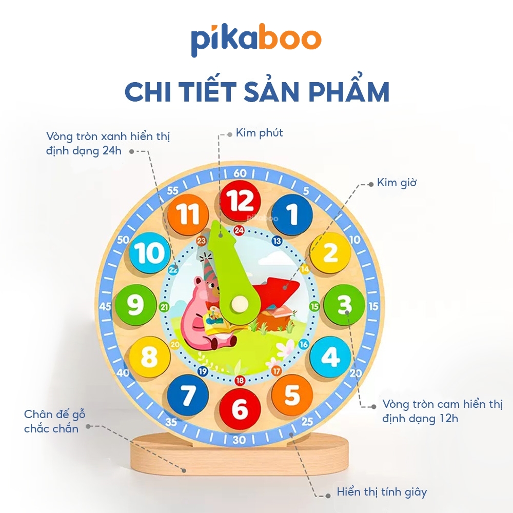Đồ chơi giáo dục đồng hồ số học gỗ Pikaboo giúp bé phát triển tư duy trí tuệ chất liệu cao cấp an toàn cho bé