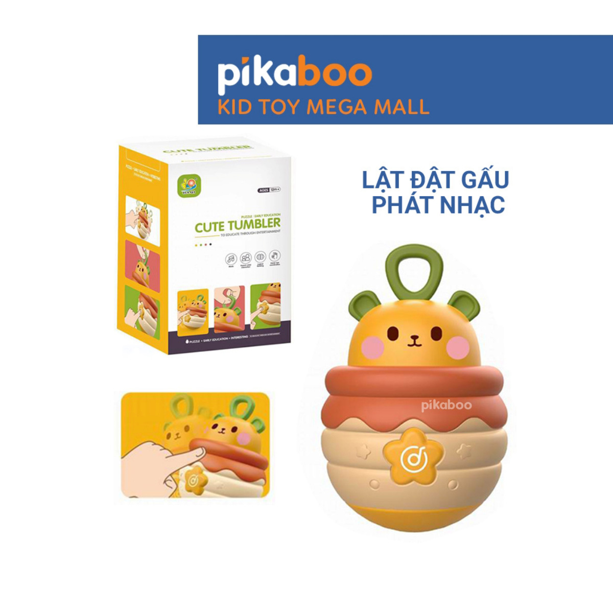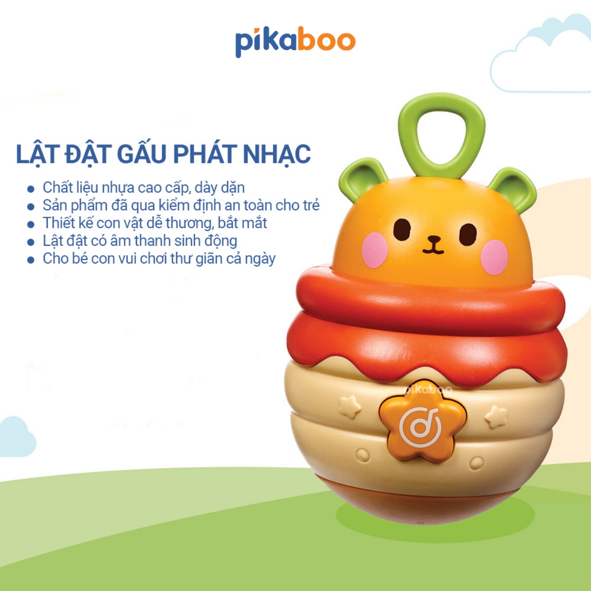 Đồ chơi lật đật gấu phát nhạc Pikaboo, có đèn sáng và âm thanh vui nhộn, chất liệu an toàn cho bé