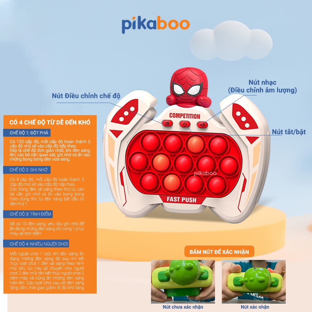 Đồ chơi Máy chơi game Pop It Pikaboo bản mới bấm nút theo đèn nhạc với 4 chế độ giúp bé luyện phản xạ giữa tay và mắt