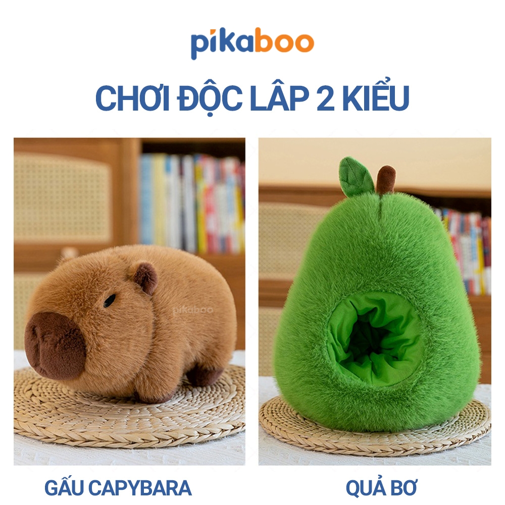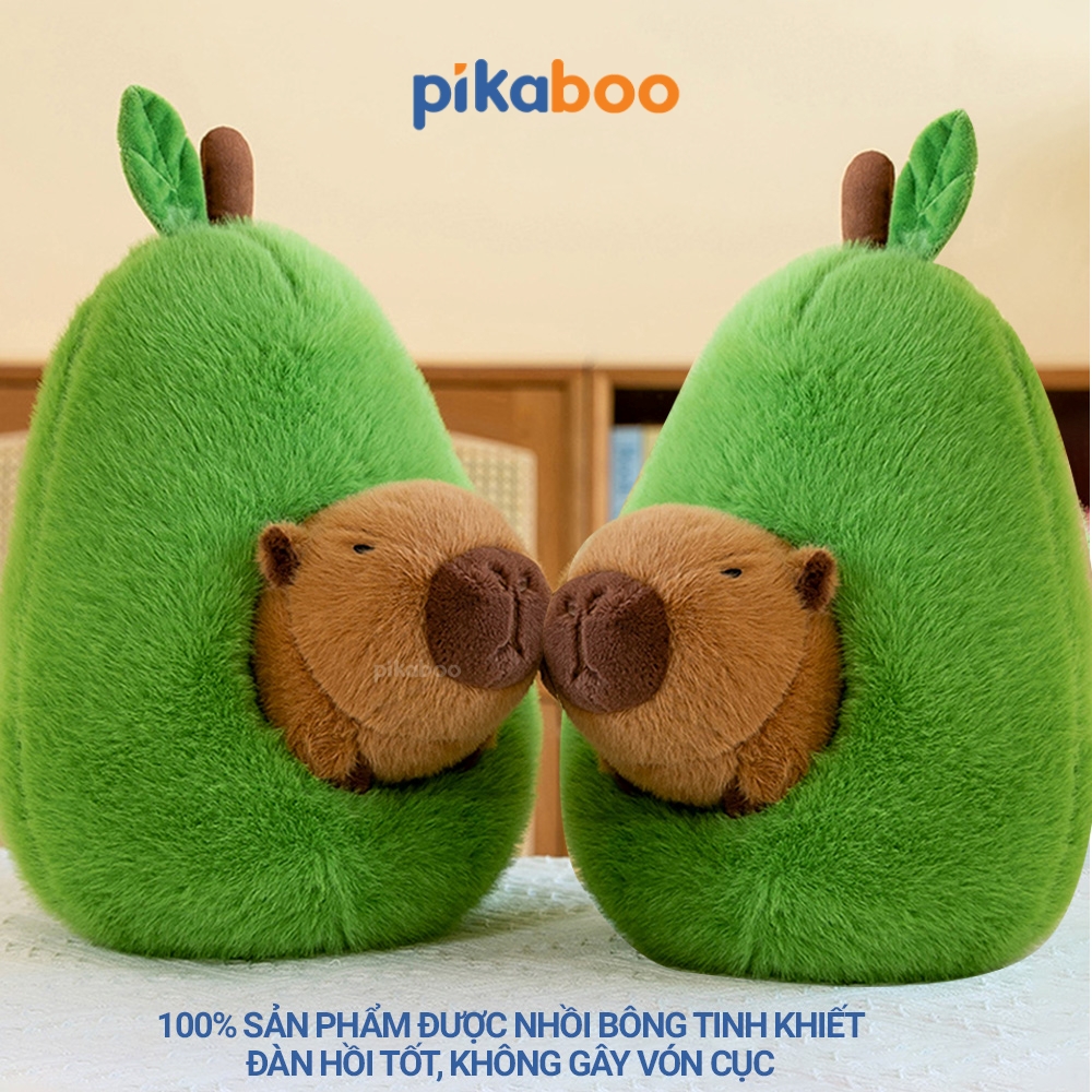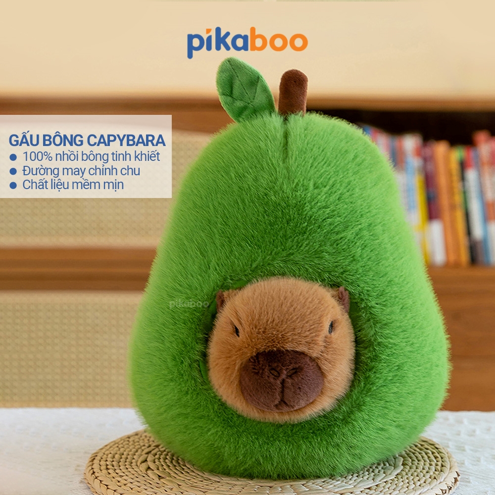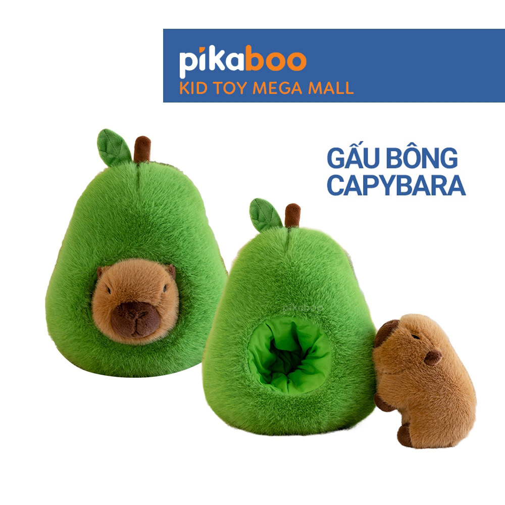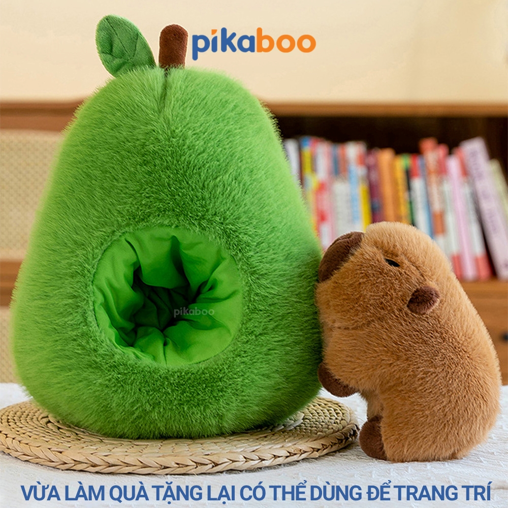 Gấu Bông Quả Bơ 2in1 Chuột Lang Capybara Pikaboo cao cấp, quả bơ xanh mướt, Capybara có thể tháo rời linh hoạt giúp cho bé chơi thích thú hơn.