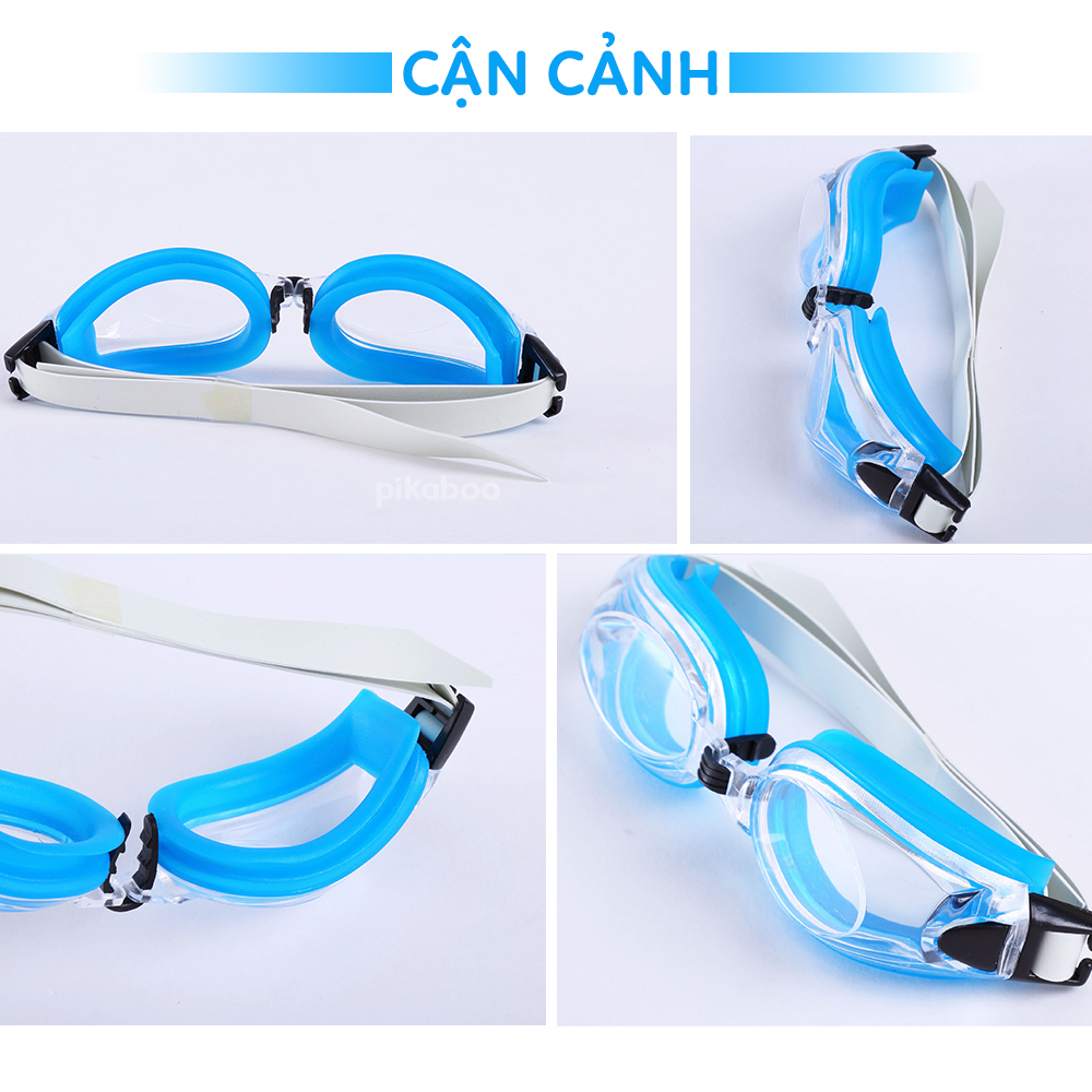 - Chất liệu: nhựa và silicone tại viền mắt kính giúp cản nước hiệu quả, tránh nước bị tràn vào mắt khi bơi.
