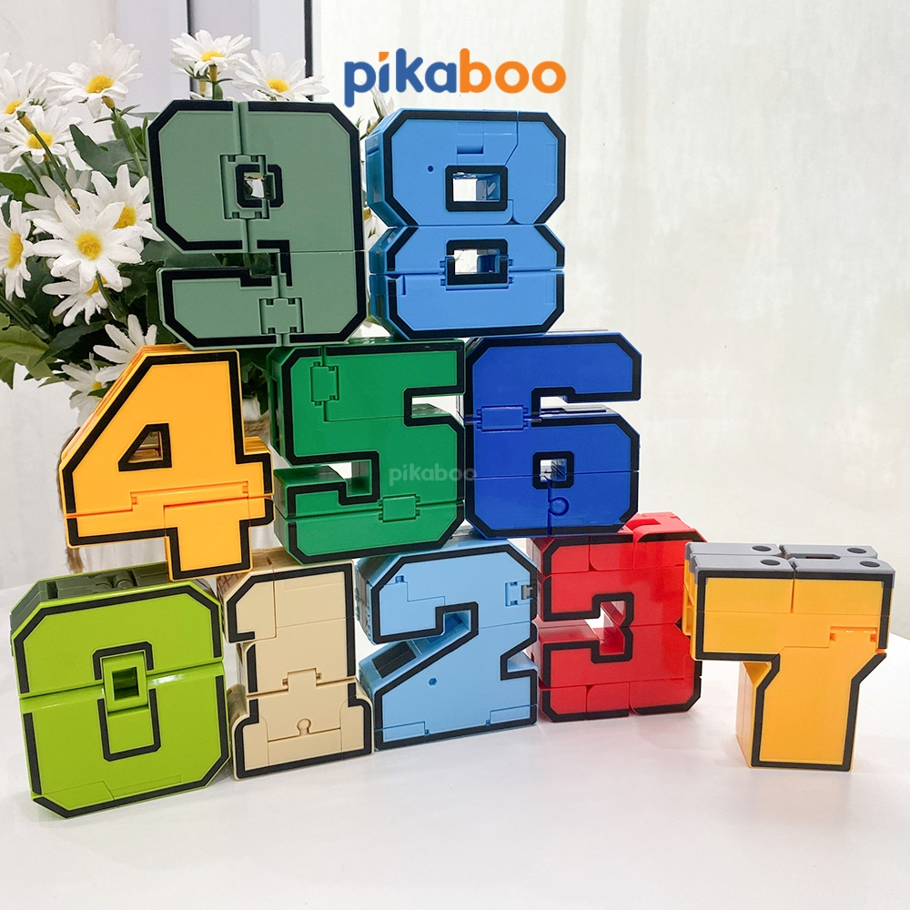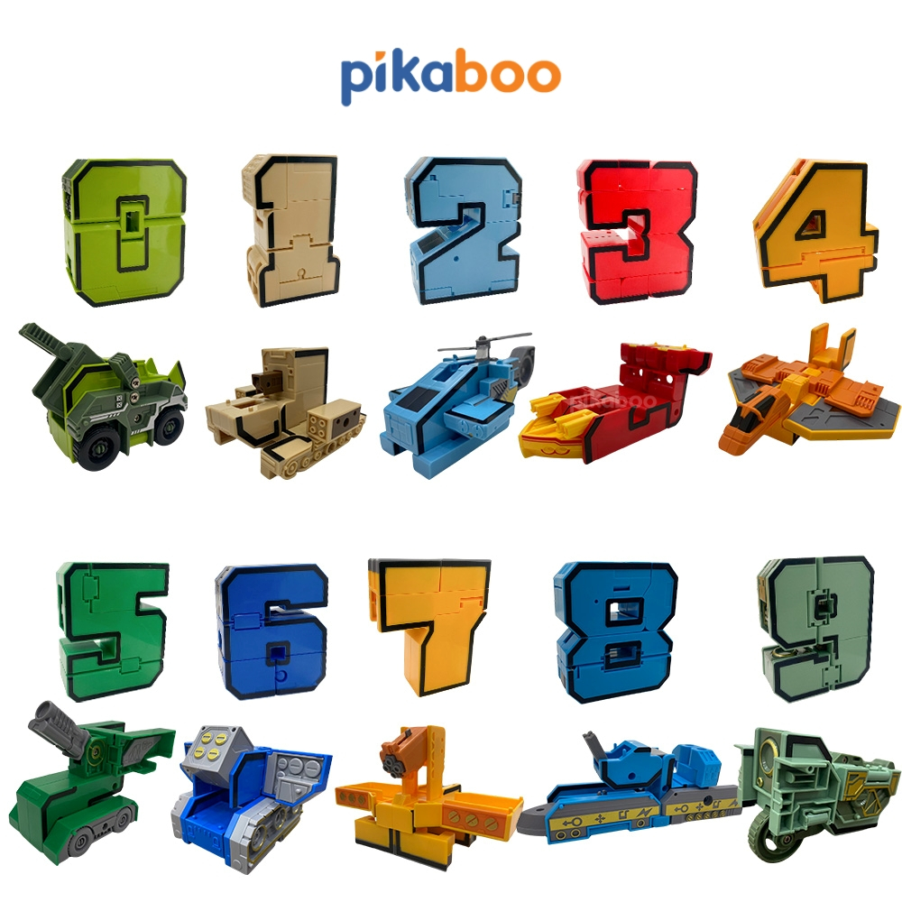 Đồ chơi lắp ghép Bộ chữ số biến hình cao cấp Pikaboo có thể ghép thành robot cỡ lớn chất liệu nhựa an toàn.