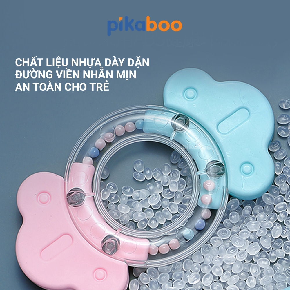 - Mỗi sản phẩm sẽ có các hạt nhựa ở trong tạo âm thanh khi lắc nghe rất vui tai, phía tay cầm có thể gặm nướu