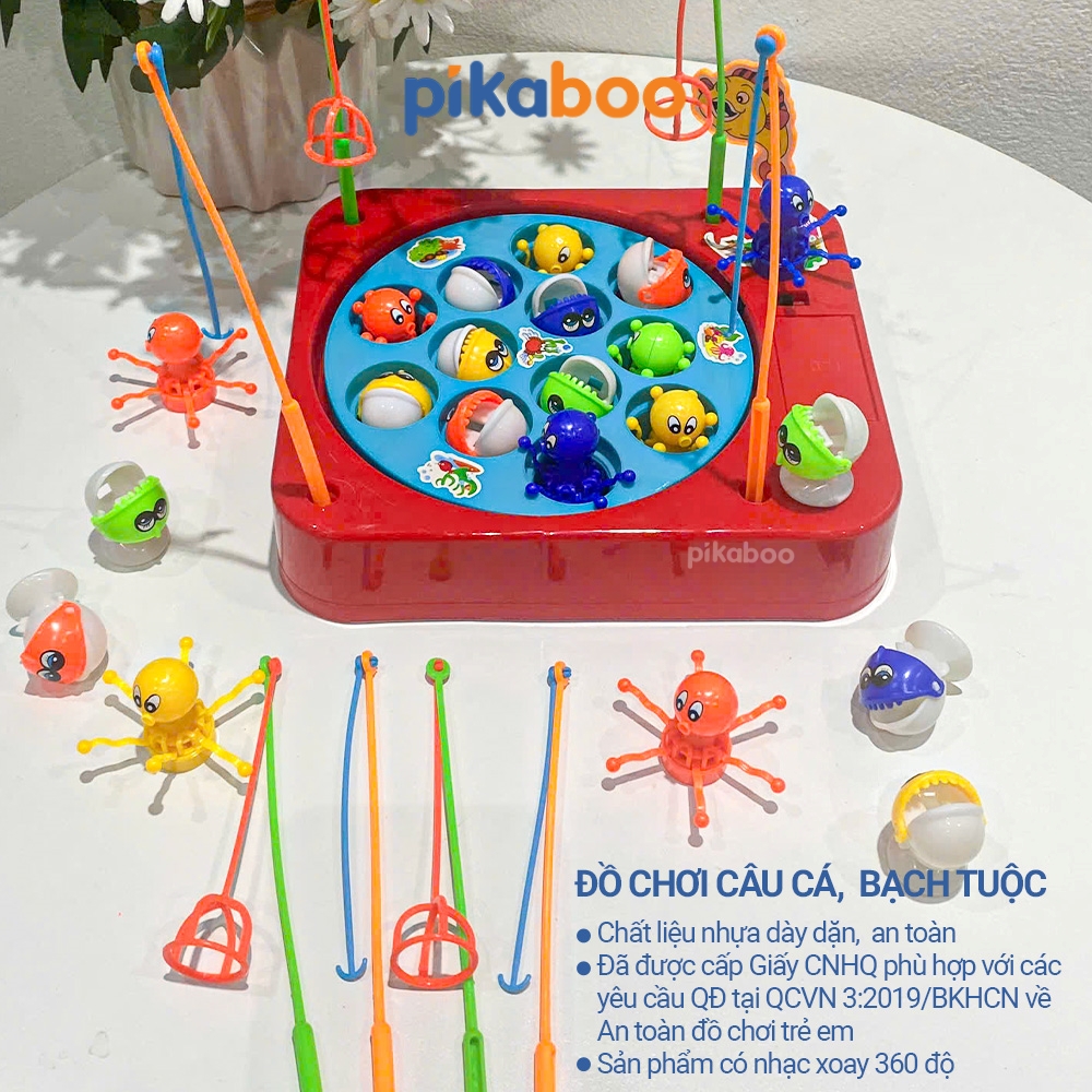 Đồ chơi câu cá Pikaboo có nhạc hấp dẫn, cá bơi tung tăng vui nhộn và tăng độ thử thách của trò chơi cho các con. Sản phẩm được làm bằng chất liệu nhựa dày dặn cao cấp.