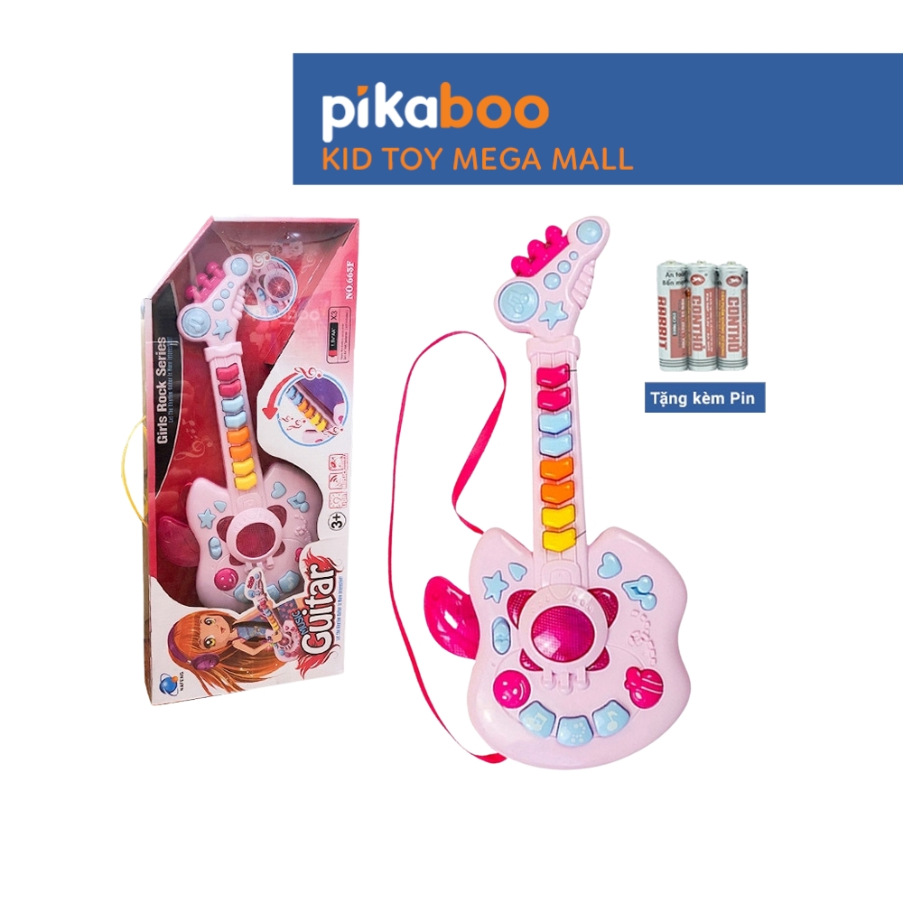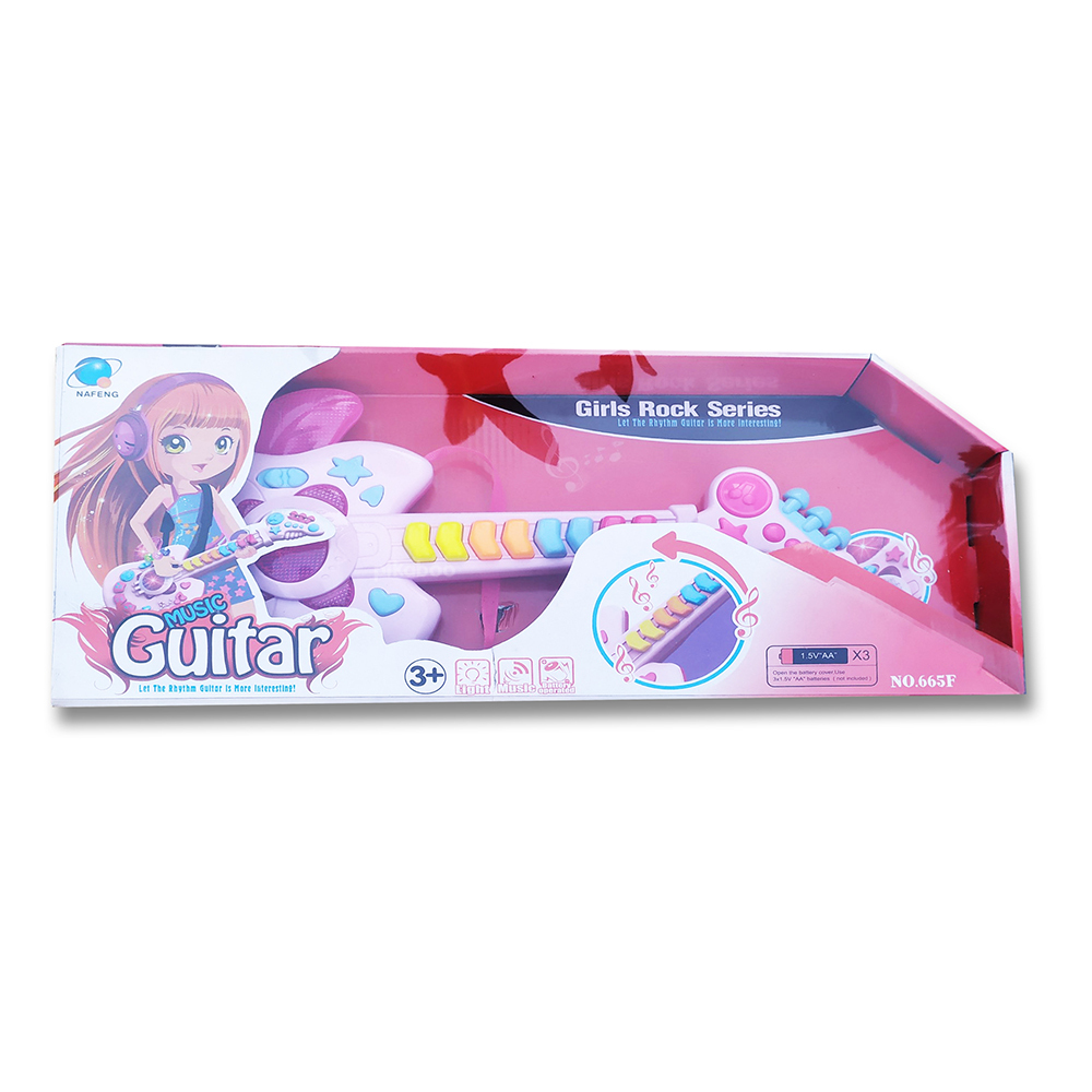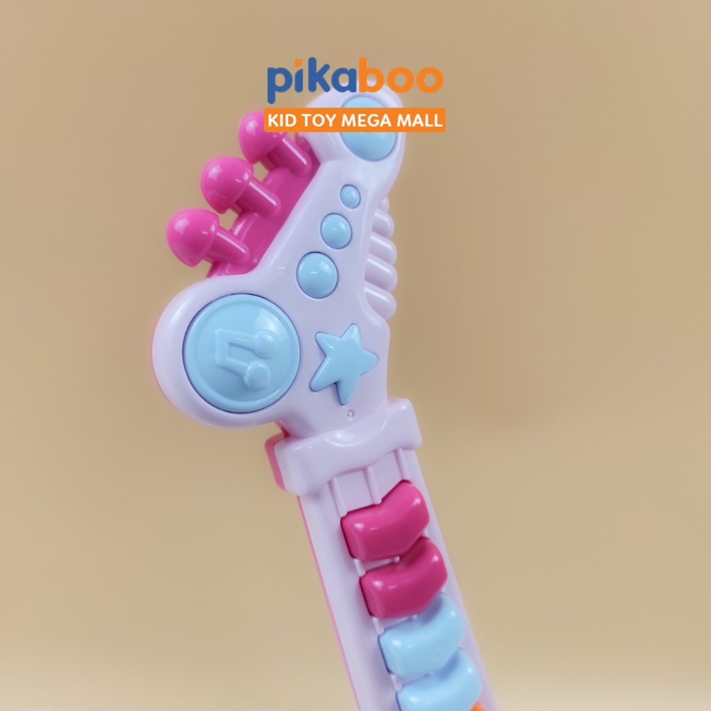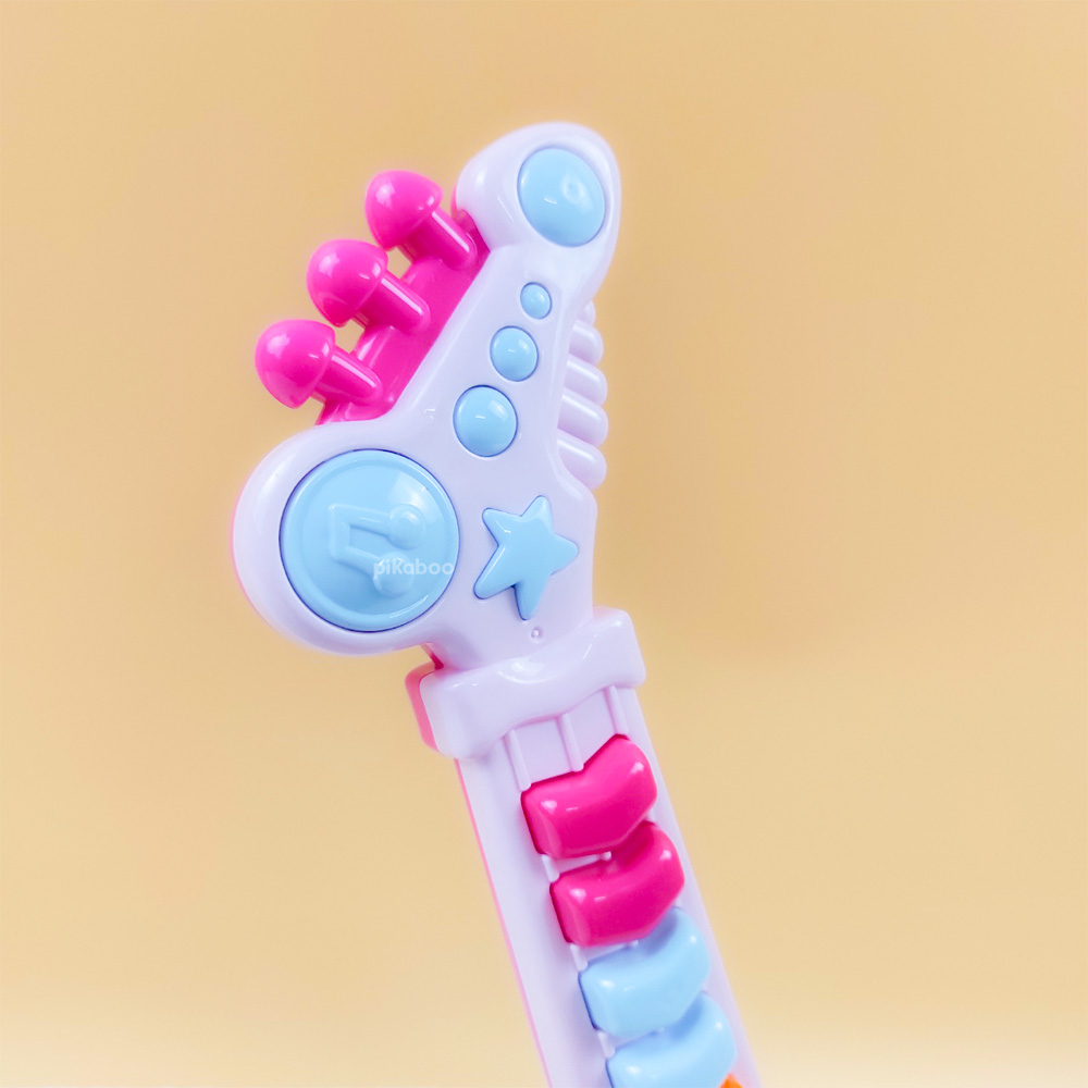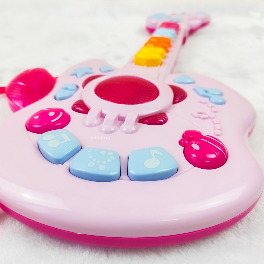 Đồ chơi đàn guitar điện tử chất liệu nhựa dày dặn an toàn, hộp đựng cách điệu cứng cáp, các phím nhạc nổi, đủ nốt nhạc cho bé chơi những bản nhạc đơn giản. Kiểu dáng cá tính mạnh mẽ phong cách rock girl cô gái chơi nhạc rock.