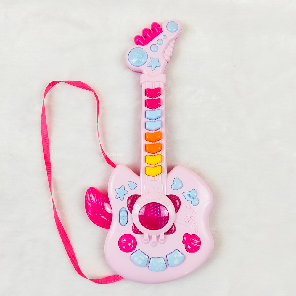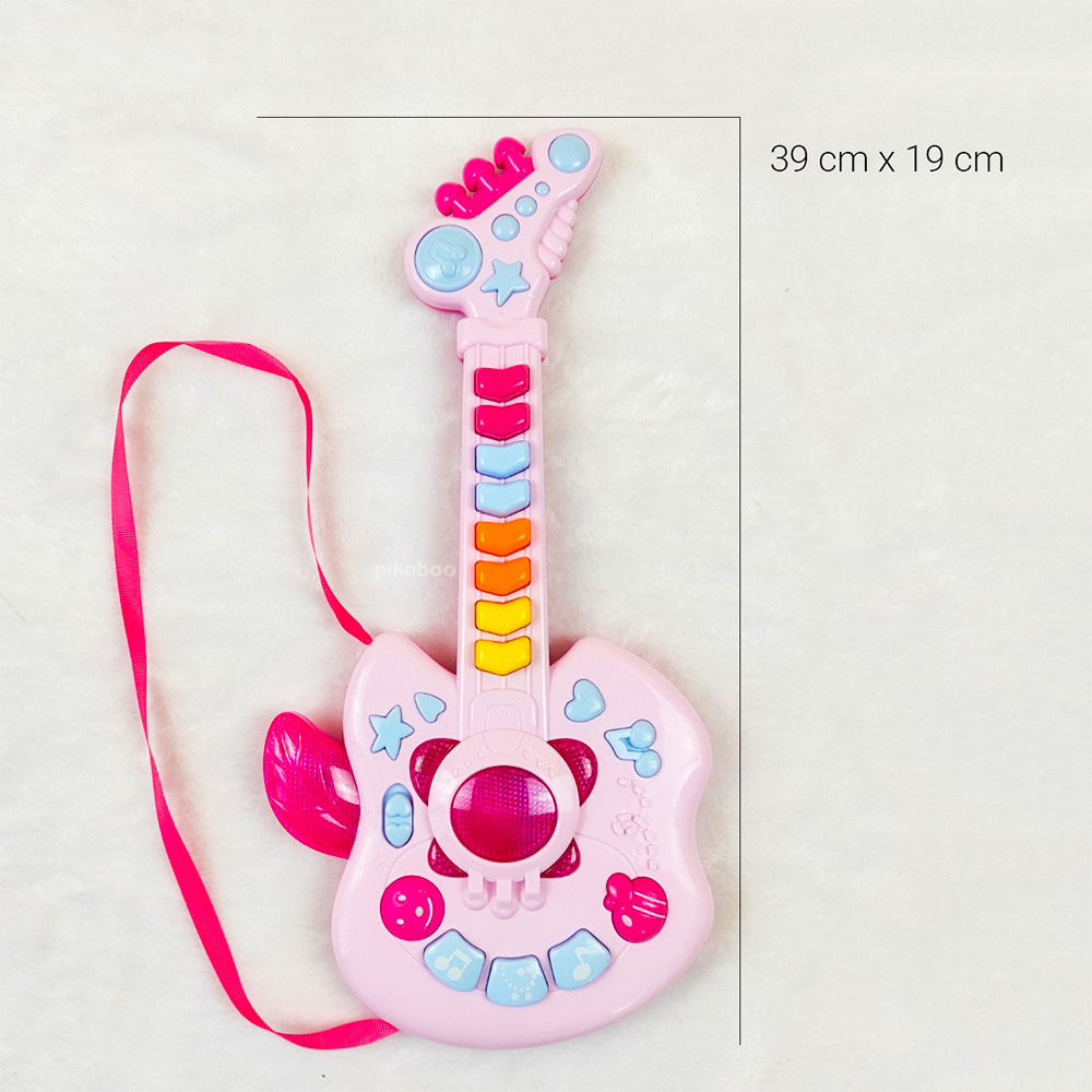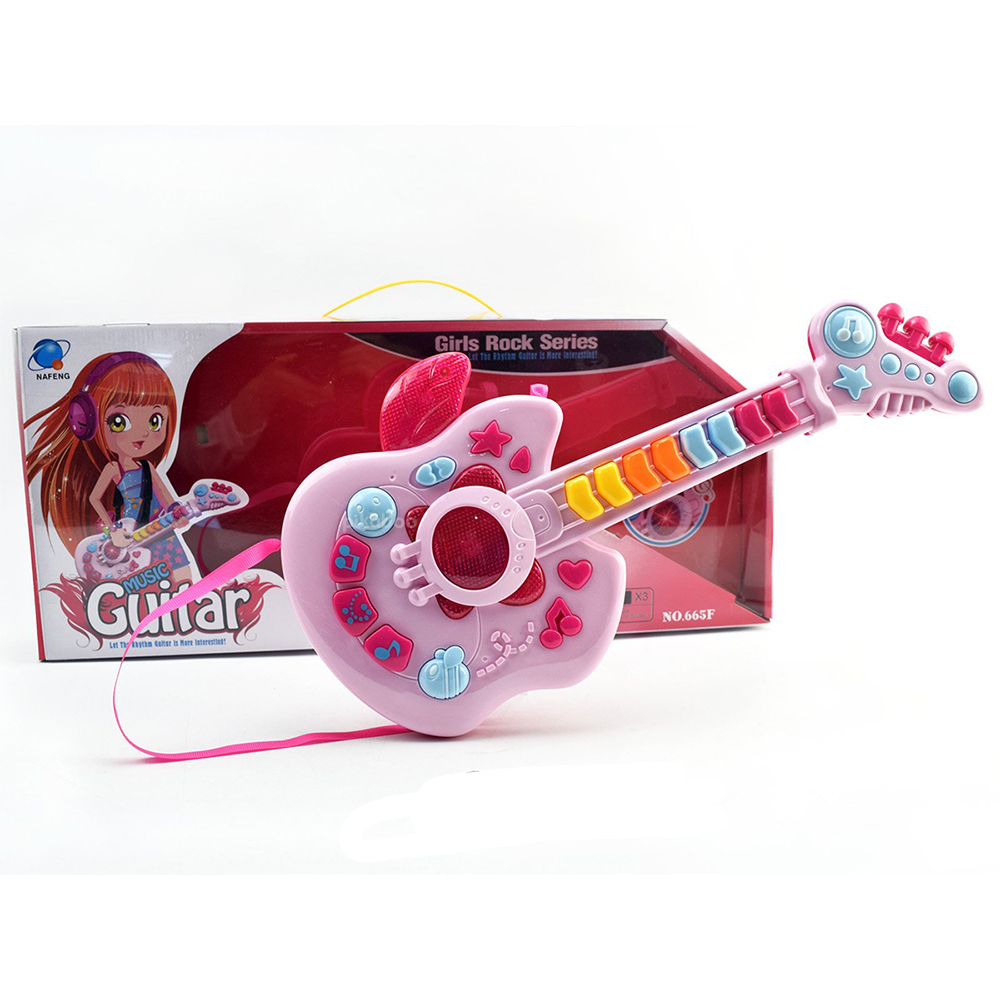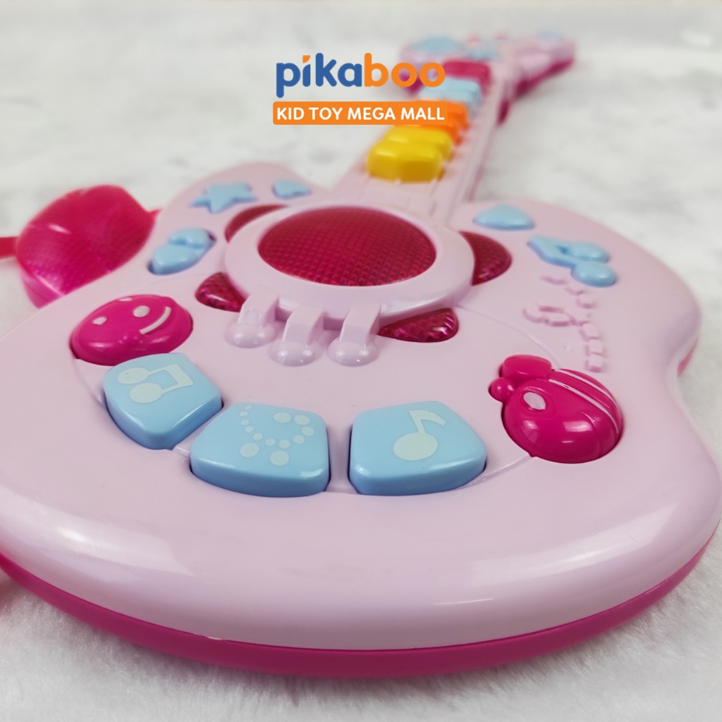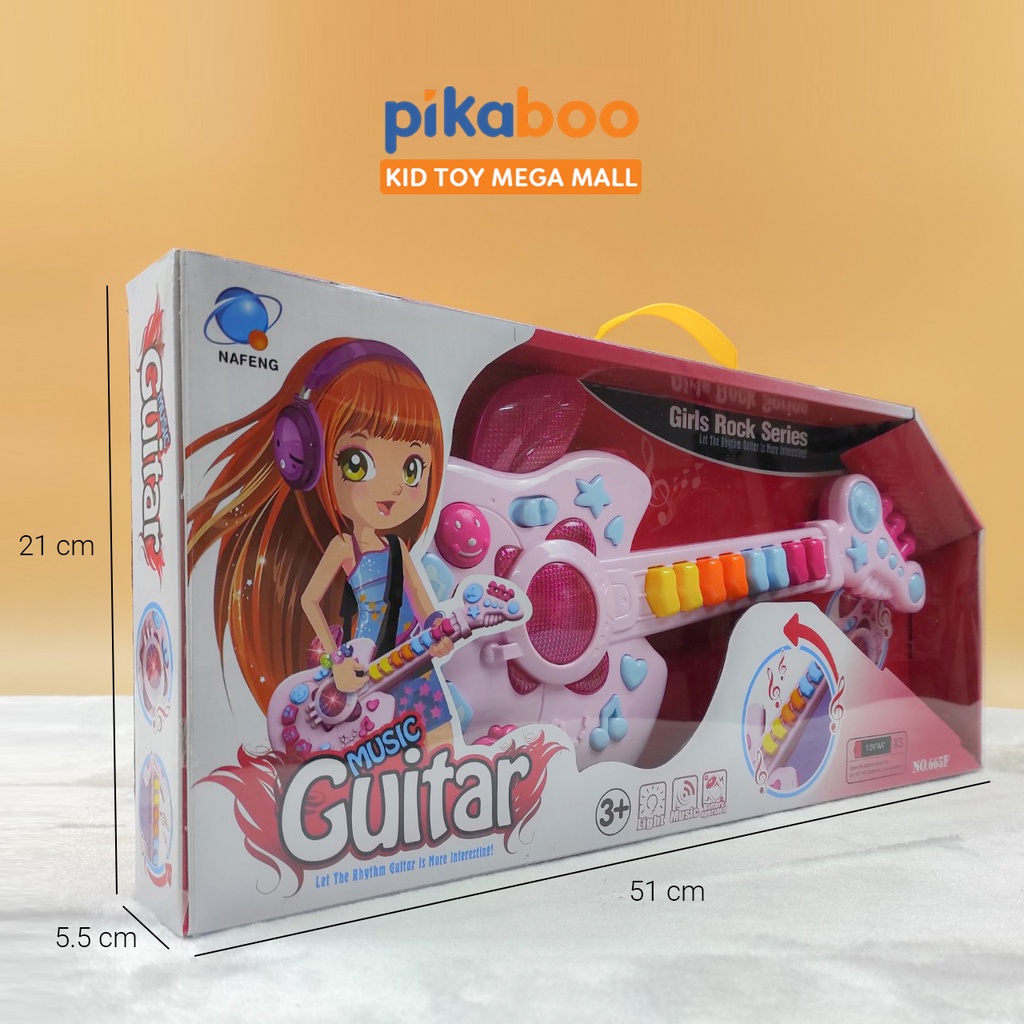 Đồ chơi đàn guitar điện tử chất liệu nhựa dày dặn an toàn, hộp đựng cách điệu cứng cáp, các phím nhạc nổi, đủ nốt nhạc cho bé chơi những bản nhạc đơn giản. Kiểu dáng cá tính mạnh mẽ phong cách rock girl cô gái chơi nhạc rock.
