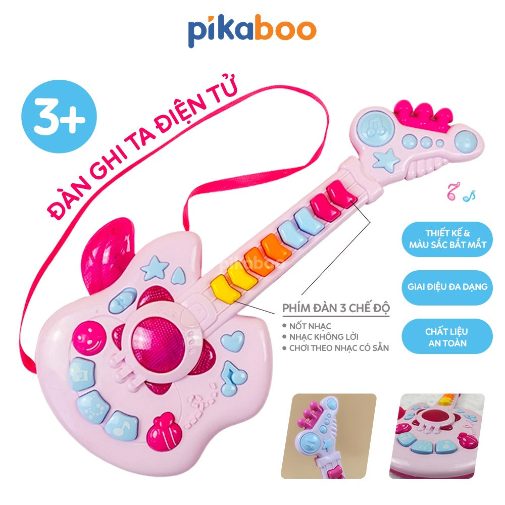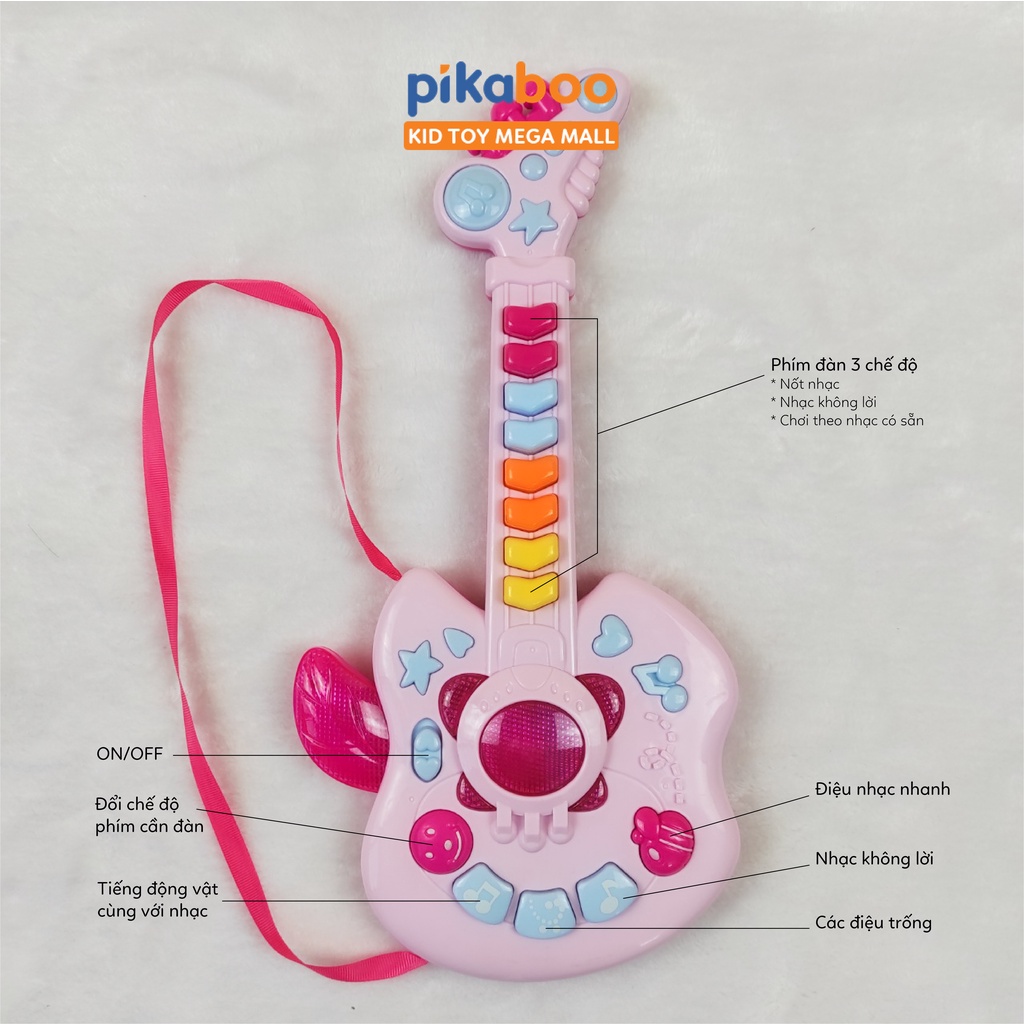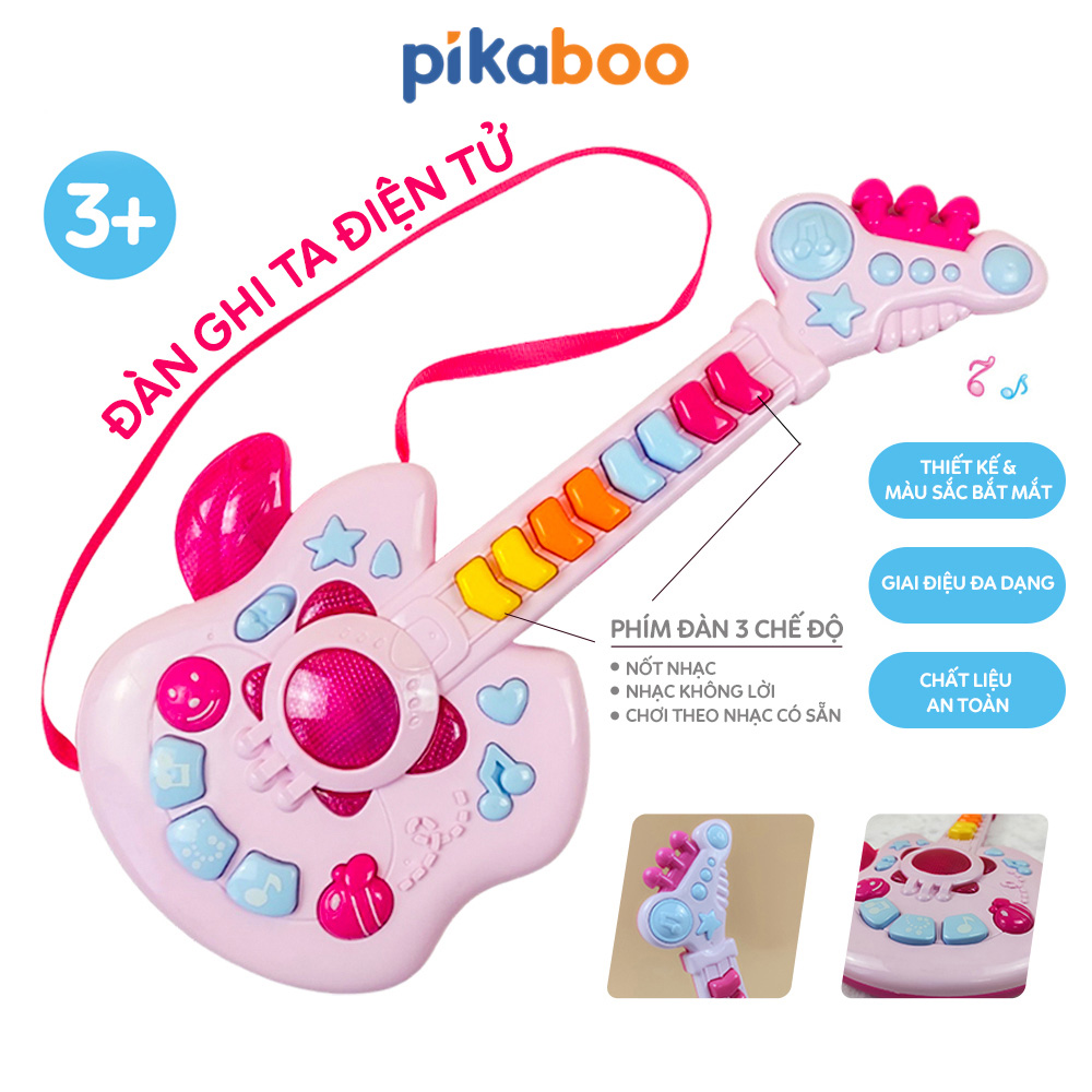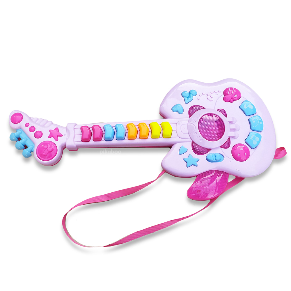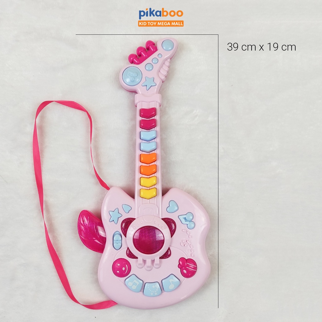 Đồ chơi đàn guitar điện tử chất liệu nhựa dày dặn an toàn, hộp đựng cách điệu cứng cáp, các phím nhạc nổi, đủ nốt nhạc cho bé chơi những bản nhạc đơn giản. Kiểu dáng cá tính mạnh mẽ phong cách rock girl cô gái chơi nhạc rock.