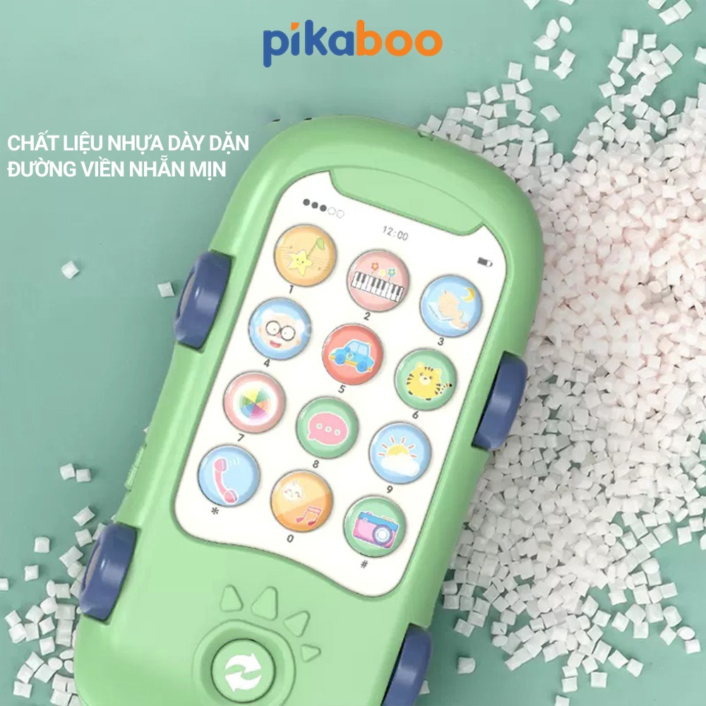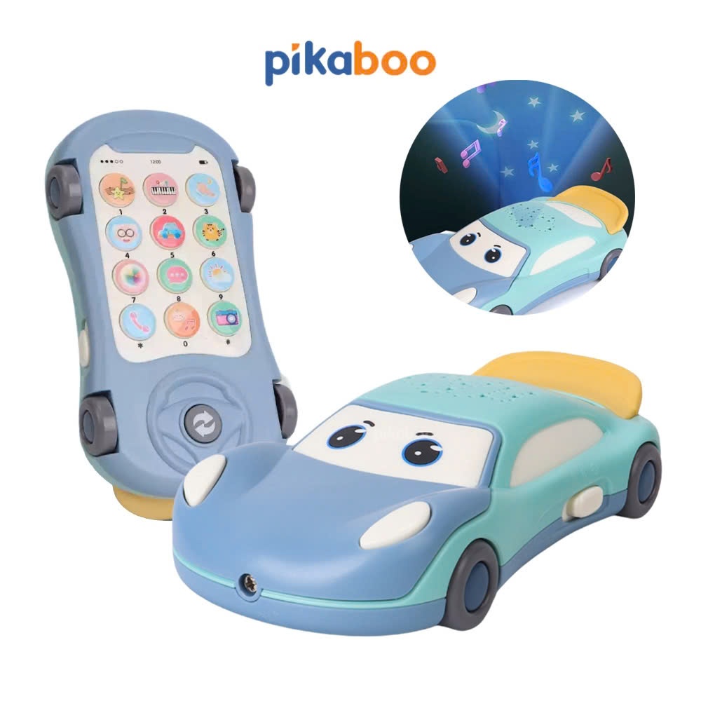 - Hay lật mặt dưới ô tô lên sẽ thành chiếc điện thoại với nhiều phím chức năng. Điện thoại có các nút bấm phát âm thanh khác nhau bằng tiếng Anh. Đặc biệt, điện thoại có thể biến thành 1 chiếc máy chiếu hình (ở khoảng cách gần) vào buổi tối với hình ảnh trăng sao cùng các bài hát ru giúp bé dễ vào giấc ngủ.
