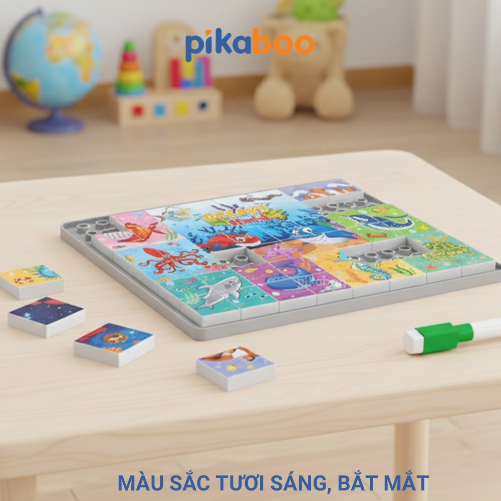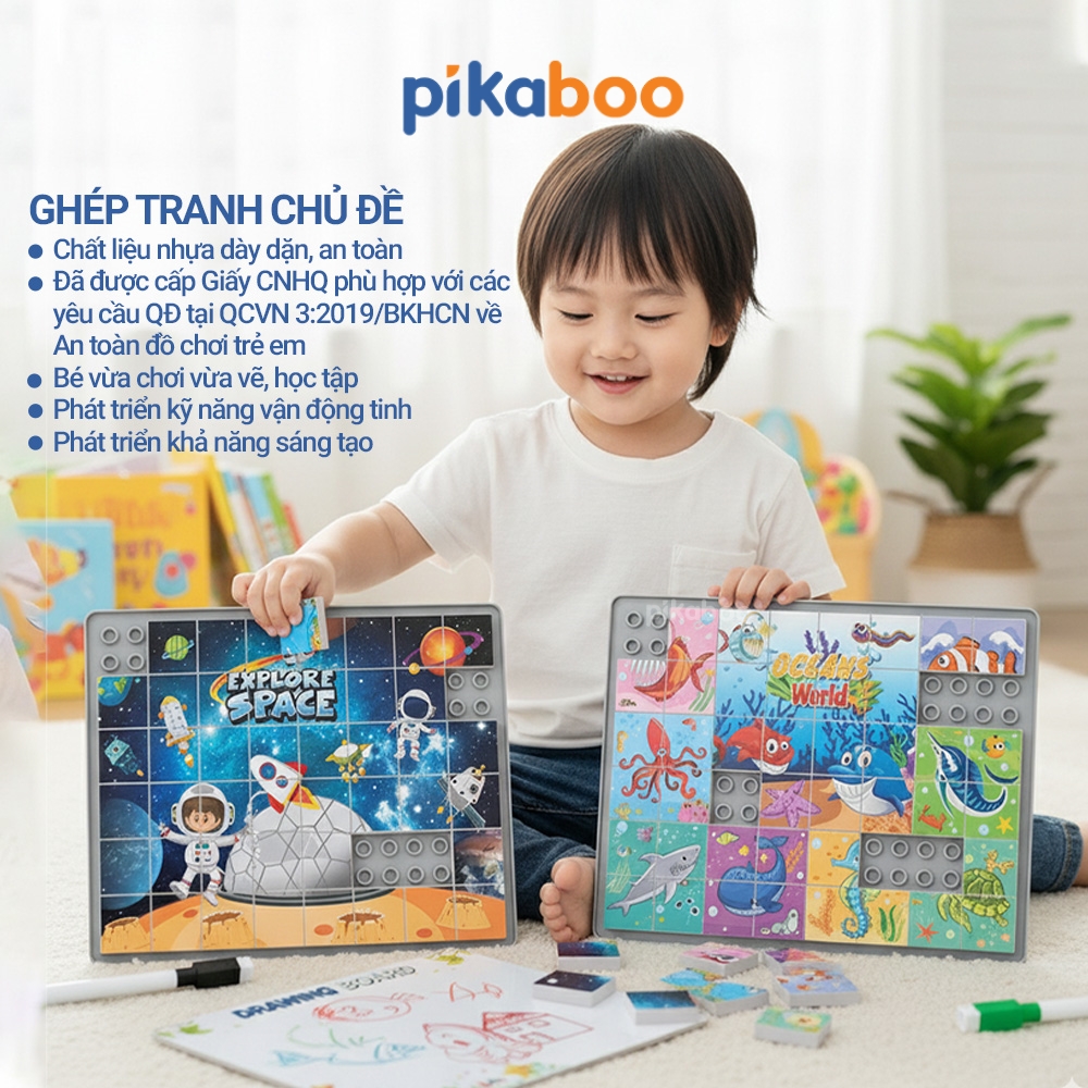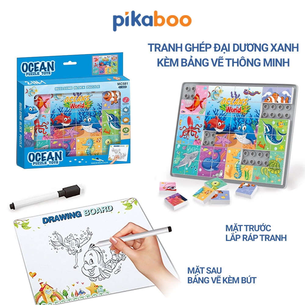 Đồ chơi ghép tranh chủ đề có bảng vẽ xóa thông minh Pikaboo, đồ chơi lắp ráp thông minh bé vừa học vừa chơi