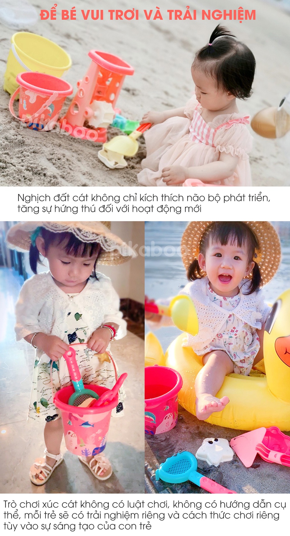 - Hướng dẫn sử dụng: Bé chơi với cát ở bãi biển hay chơi ở nhà với các loại hạt như hạt muồng, hạt đậu,...đều rất thú vị và cuốn hút. Đây sẽ là một món quà ý nghĩa của ba mẹ dành cho bé yêu trong những ngày hè