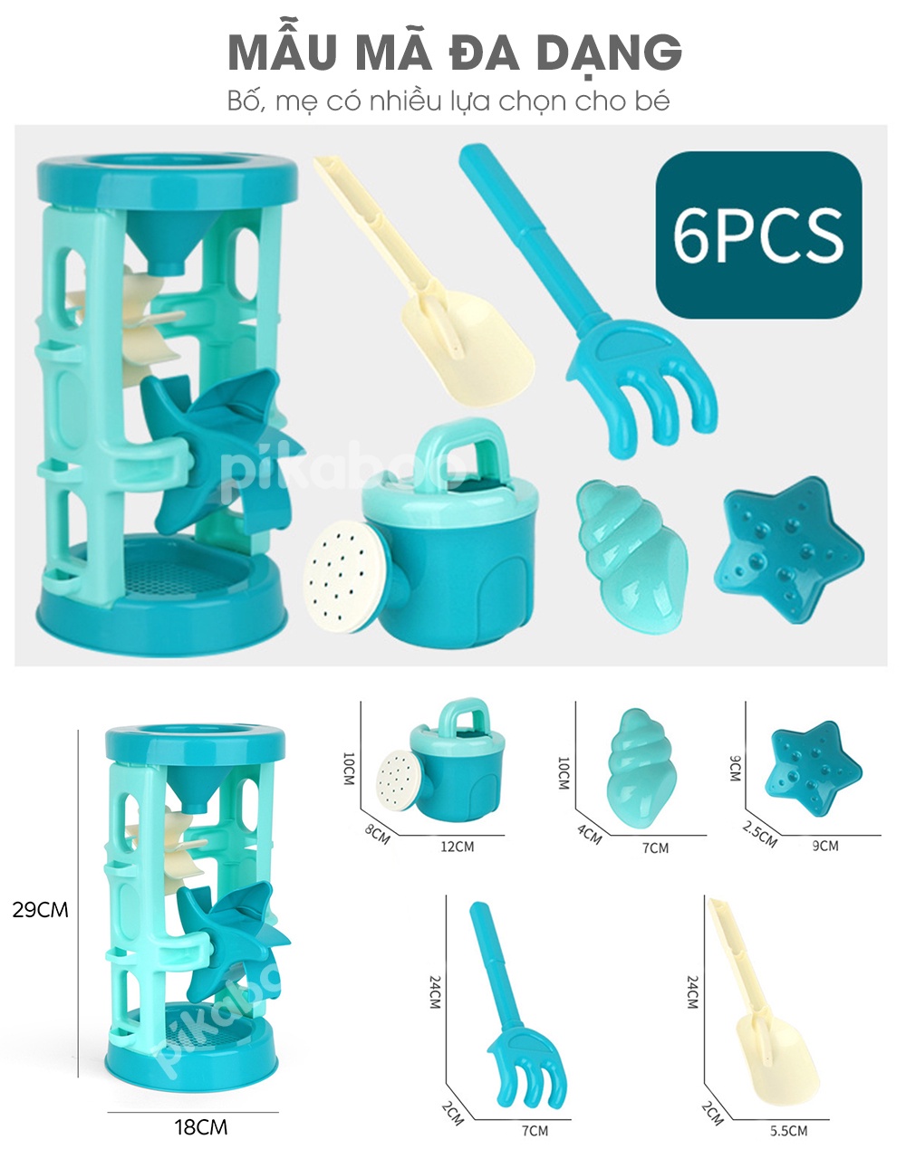 + Guồng cát xanh 6 Pcs: 29x18cm