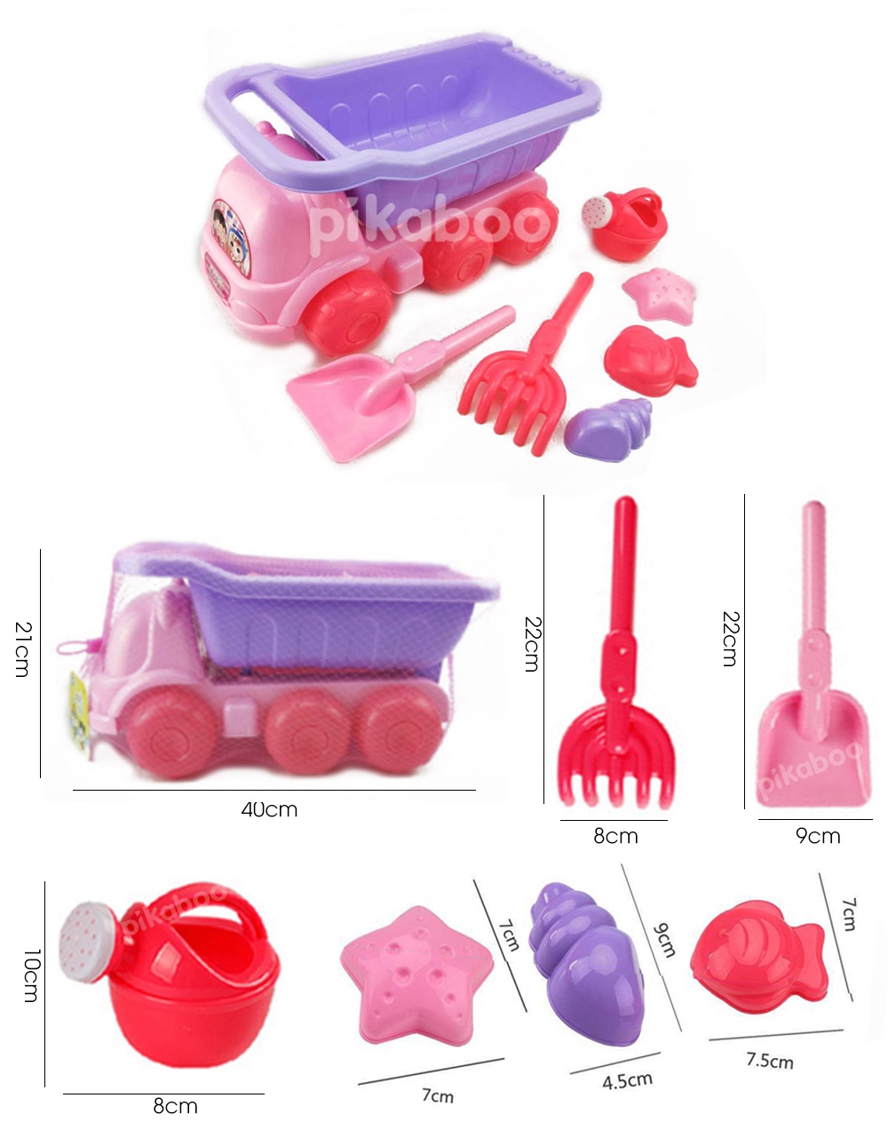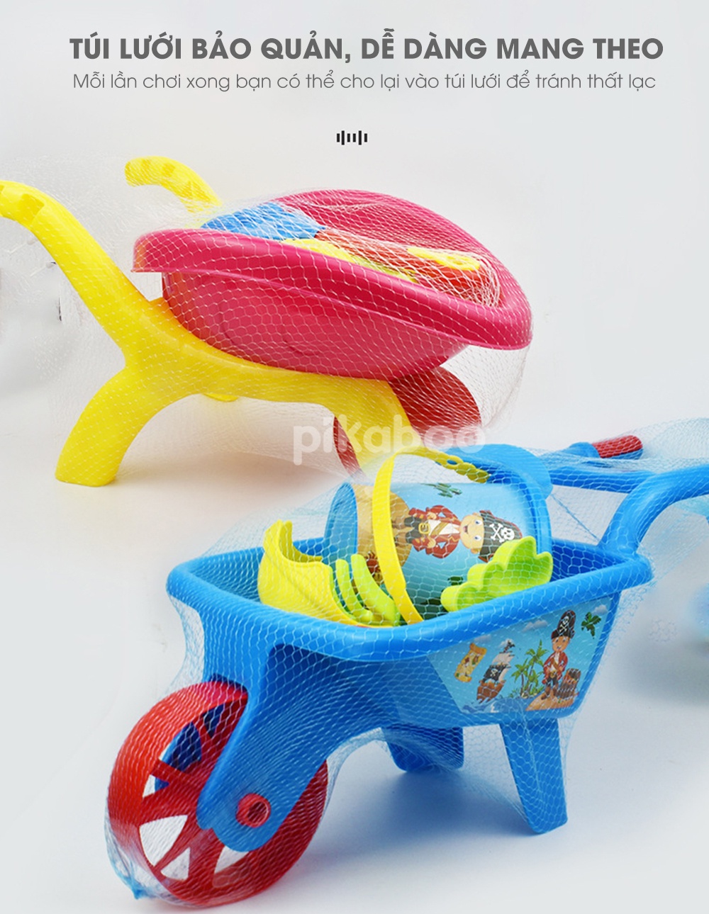 + Xe đổ cát 6 Pcs xanh & hồng: 43x24cm