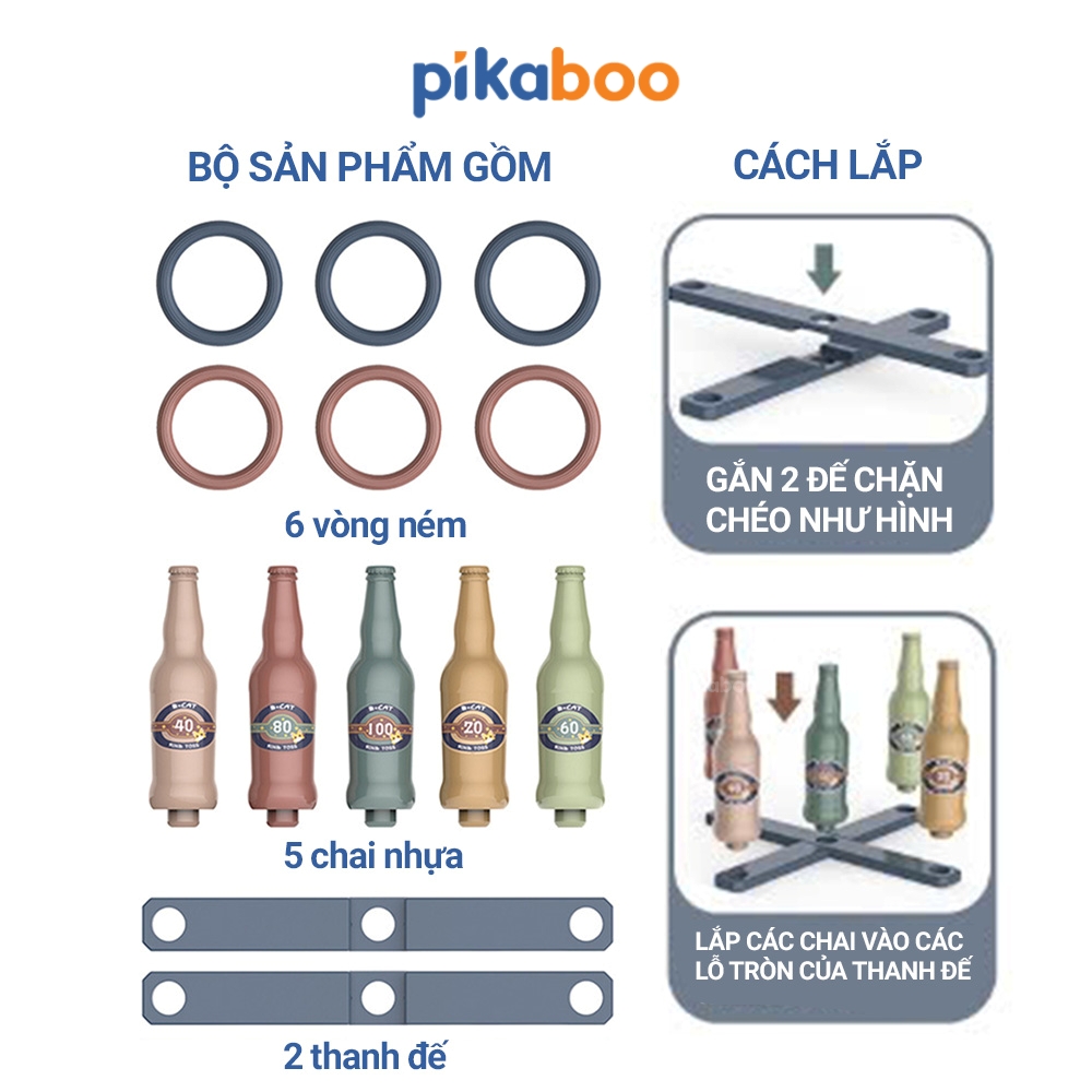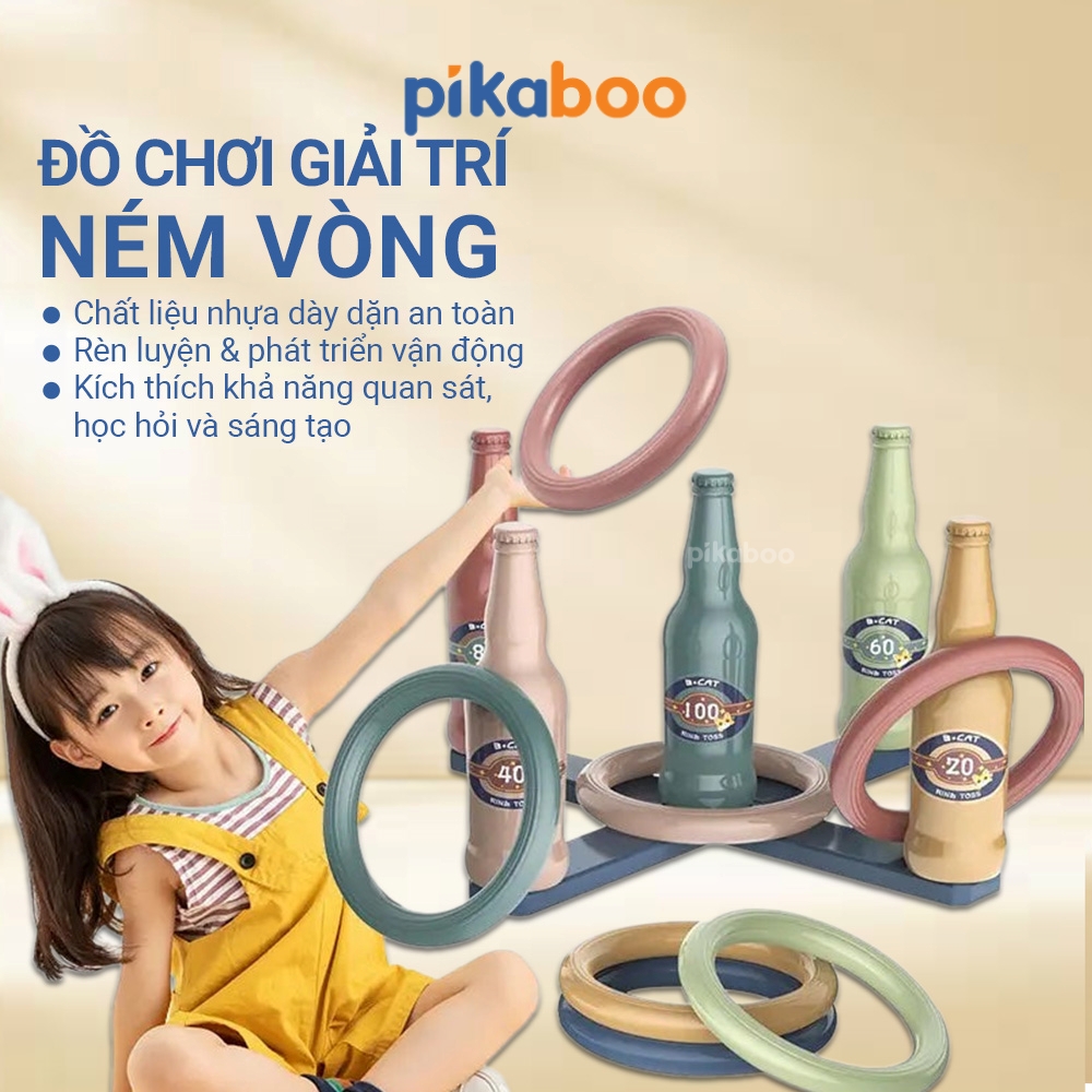 Đồ chơi thể thao ném vòng vào chai Pikaboo, chơi giải trí, chất liệu nhựa cao cấp, an toàn cho trẻ