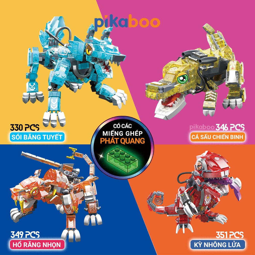 Đồ chơi xếp hình theo chủ đề có miếng ghép phát sáng Pikaboo, mô hình có khớp linh hoạt dễ tạo kiểu cho bé thỏa sức sáng tạo.