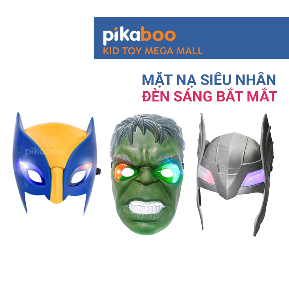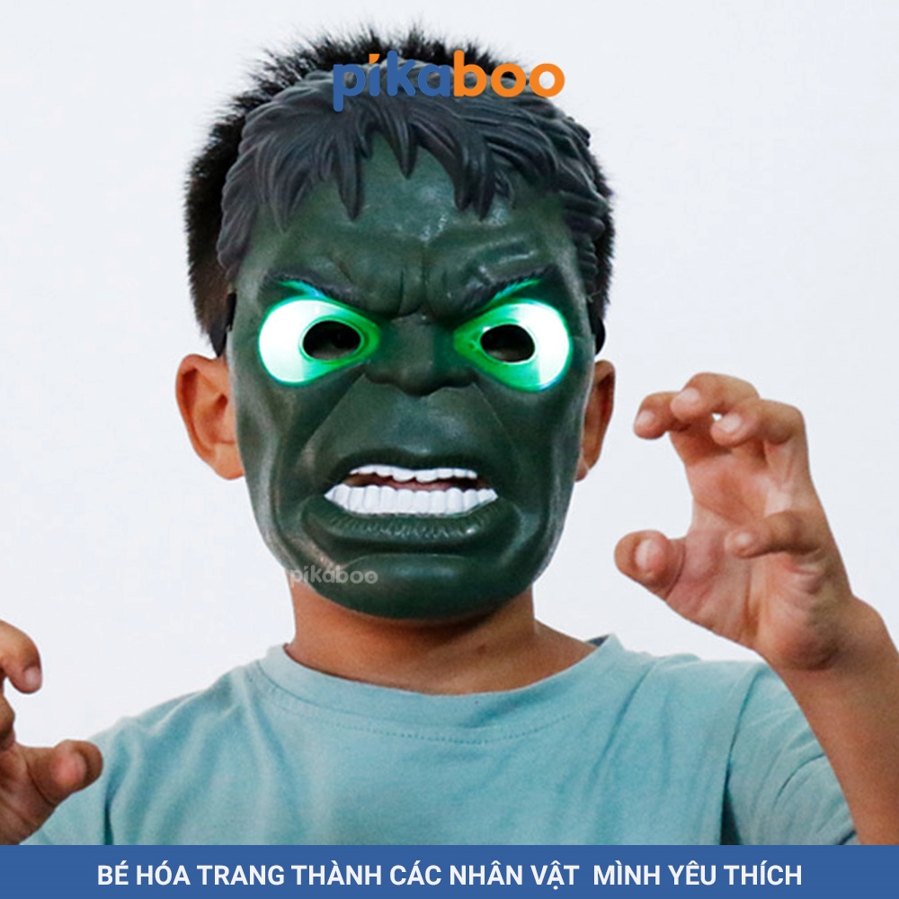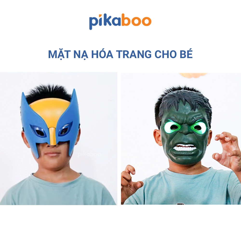 - Mặt nạ cao cấp Pikaboo được thiết kế chân thật, mạnh mẽ, màu sắc bắt mắt, sẽ giúp bé được hóa thân thành những nhân vật anh hùng trong mơ, đó là Người sói,Khổng lồ xanh, Thận Thor