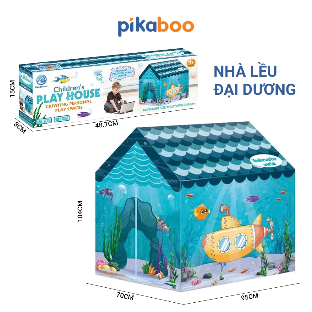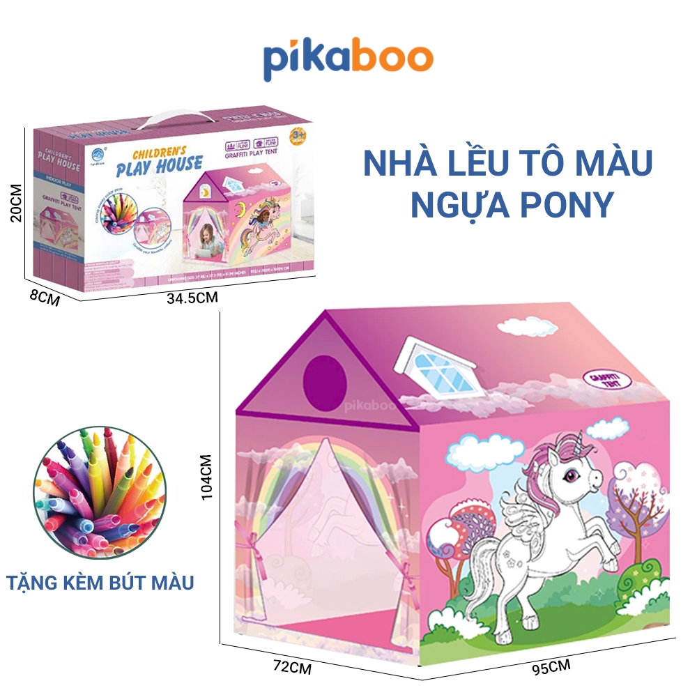 ⛺ Nhà lều cao cấp cho trẻ em Pikaboo, chất liệu vải chống thấm nước, họa tiết màu sắc bắt mắt cho bé