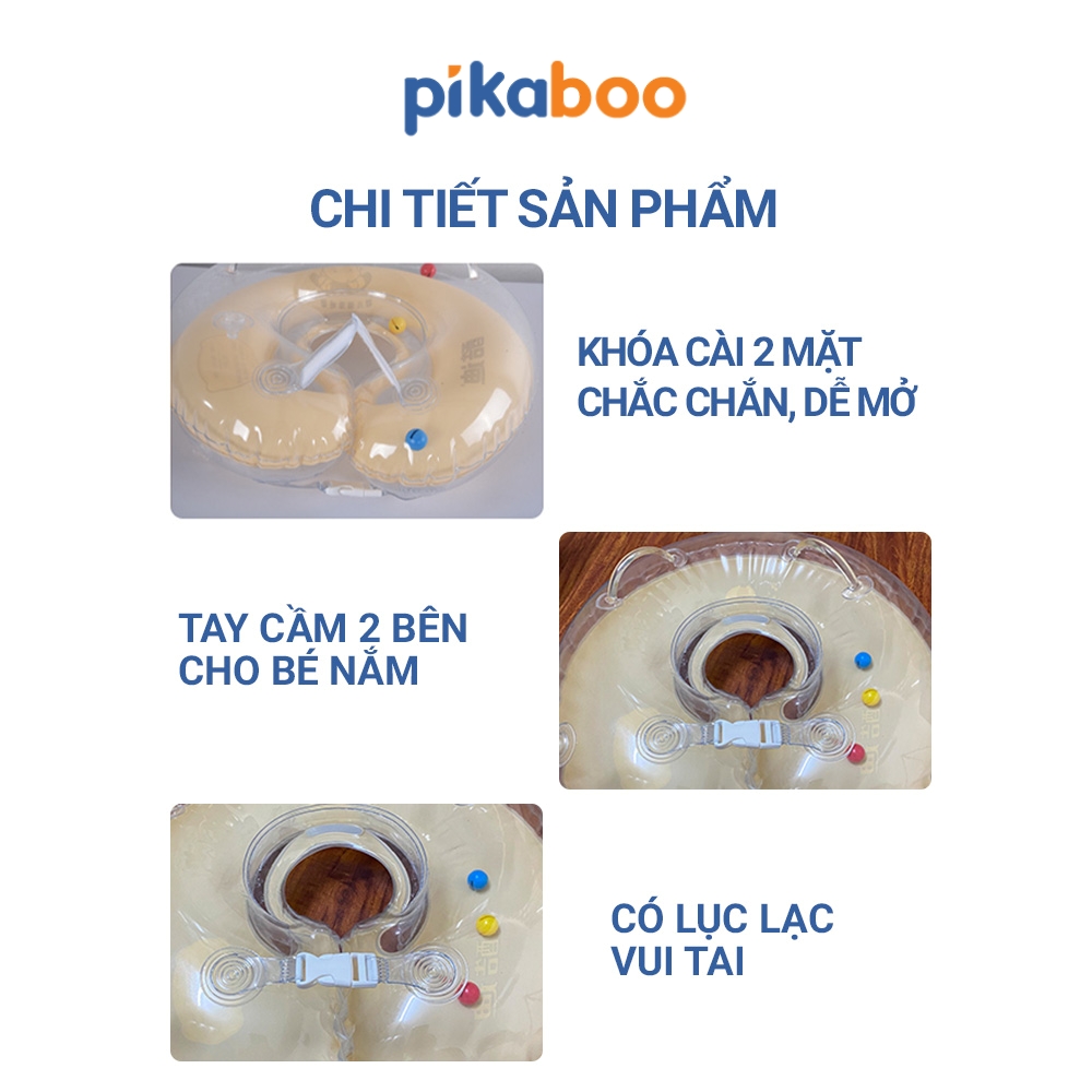 - Bên trong phao cổ có các viên xúc xắc tạo âm thanh thú vị khi bé bơi.